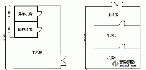 如上圖所述,兩個(gè)屏蔽機(jī)房被套裝在主機(jī)房?jī)?nèi)。滅火分區(qū)劃分出現(xiàn)兩種不同意見,一種意見是將三個(gè)房間劃成一個(gè)區(qū)域采用全淹沒單元獨(dú)立系統(tǒng)進(jìn)行滅火,也就是說三個(gè)區(qū)域中任何一個(gè)發(fā)生火災(zāi)時(shí)三個(gè)房間同時(shí)發(fā)出警報(bào)并同時(shí)噴放藥劑;另外一種意見是將這三個(gè)房間當(dāng)成三個(gè)獨(dú)立的防火分區(qū),采用一套組合分配全淹沒滅火系統(tǒng),任何一個(gè)房間發(fā)生火災(zāi)時(shí)三個(gè)房間同時(shí)報(bào)警,但系統(tǒng)只向發(fā)生火災(zāi)的區(qū)域噴放滅火藥劑。前者意見使用藥劑量要大于后者,三個(gè)房間實(shí)際被當(dāng)作一個(gè)獨(dú)立的滅火區(qū)對(duì)待,基本無太多異議,但投資相對(duì)后者要高;后者情況需要我們模擬火災(zāi)現(xiàn)場(chǎng)后再定,若機(jī)房1著火,全部房間報(bào)警,人員全部撤離,藥劑只輸送到機(jī)房1,若主機(jī)房發(fā)生火災(zāi),全部房間報(bào)警,人員全部撤離,藥劑只輸送到主機(jī)房,基本無任何危險(xiǎn)情況發(fā)生,警報(bào)區(qū)域和范圍依照《火災(zāi)自動(dòng)報(bào)警系統(tǒng)設(shè)計(jì)規(guī)范》4.2.1.1化為一個(gè)報(bào)警區(qū)域,滅火區(qū)域劃分為三個(gè)獨(dú)立的保護(hù)區(qū),并按照氣體保護(hù)區(qū)要求設(shè)置外開門及圍護(hù)結(jié)構(gòu)。所以后者方案從使用和投資方面講更合理。
