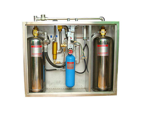 廚房自動滅火系統裝置產品簡介:廚房自動滅火系統裝置設有自動探測部件,可24小時監控,灶臺發生火情時可自動啟動滅火裝置也可手啟動,更安全更放心。