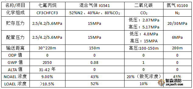 經常有客戶問:配電室可以配哪種消防產品?機房除了七氟丙烷外,還有沒有其他合適的消防產品?今天小編就為大家整理幾種主要氣體消防產品的相關參數以供參考,如下表1、表2。