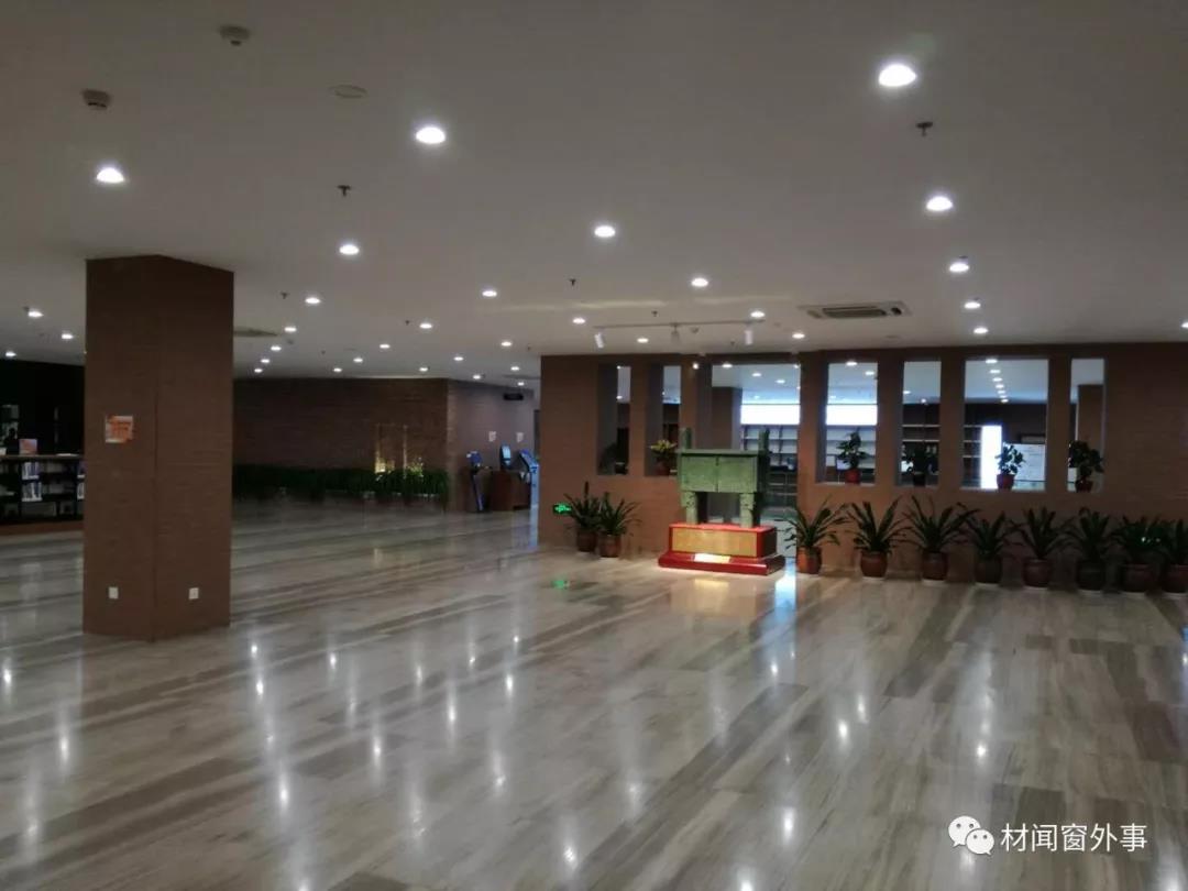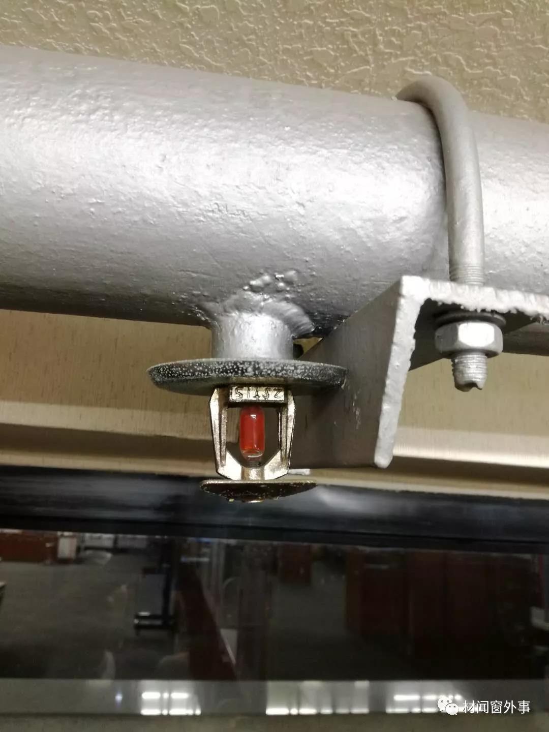 逸夫館二層中文科技圖書借閱區的消防噴淋系統,噴頭用紅色感溫玻璃球控制。