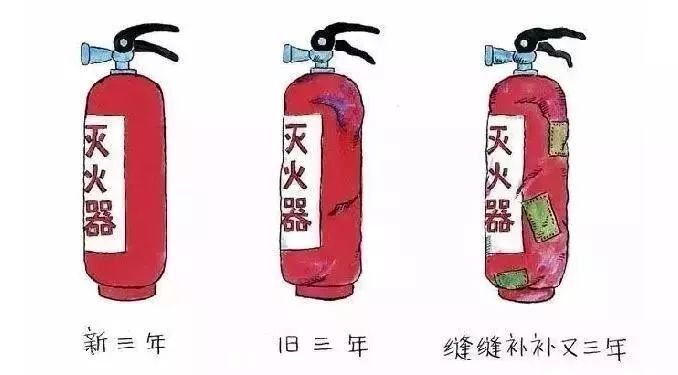 2、滅火器外殼過期。滅火器因充裝有強壓力氣體和藥劑,加之長時間的空氣腐蝕,藥劑瓶會出現震損,不能保證使用安全,每12年需強制報廢。