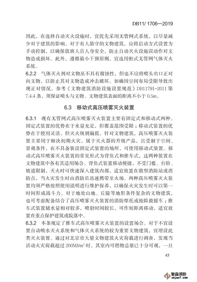 6.2.2 氣體滅火劑對文物雖不具有腐蝕性,但也不應將噴頭出口正對向文物,以防止其對文物造成沖擊破壞。如確因空間布局受限導致出現正對情況,參考《文物建筑消防設施設置規范》DB11791 -2011第7.4.4條,須保證噴頭與文物、文物建筑表面的距離不小于0.5m。