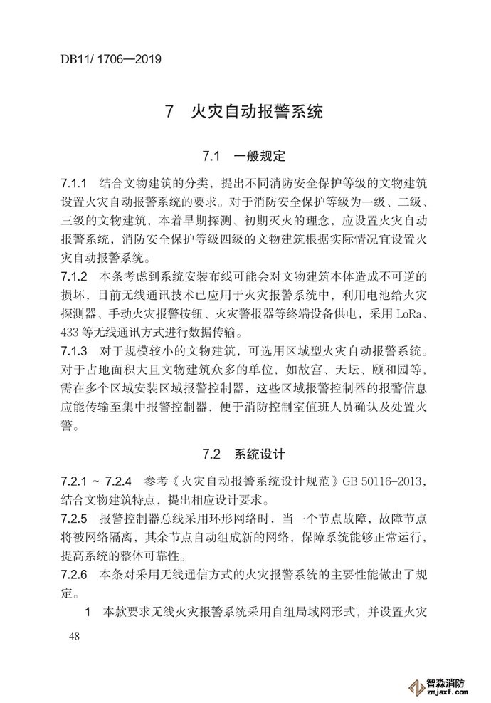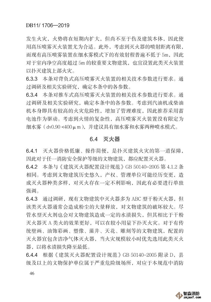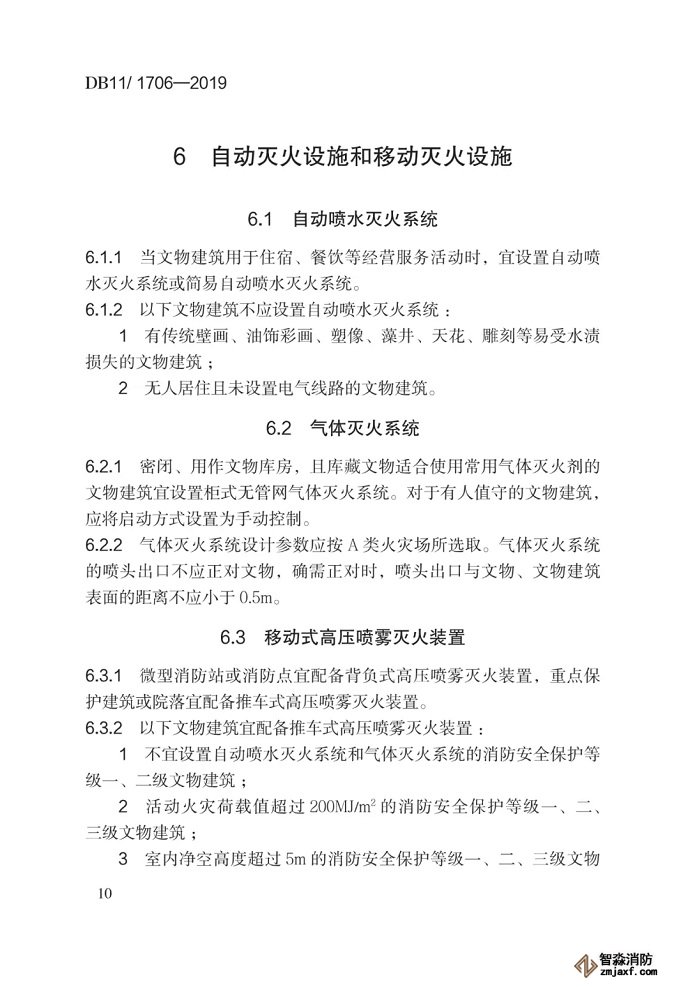 6.1.2 本條對自動噴水滅火系統在文物建筑中的禁設場合進行了要求。自動噴水滅火系統盡管可以有效抑制早期火災,但考慮其仍有較小概率發生誤動作,且存在管網跑、冒、滴、漏等風險,因此一旦設置在易遭受水漬損失的文物建筑中,可能對文物建筑及其內部珍貴文物造成不可逆的破壞。此類文物建筑應酌情選用本規范中列舉的其他滅火設施,而不應設置自動噴水滅火系統。無人居住且未設置電氣線路的文物建筑火災風險相對較低,若設置自動噴水滅火系統,其一旦系統發生誤動作,將難以及時發現、處置,反而對文物建筑保護不利。