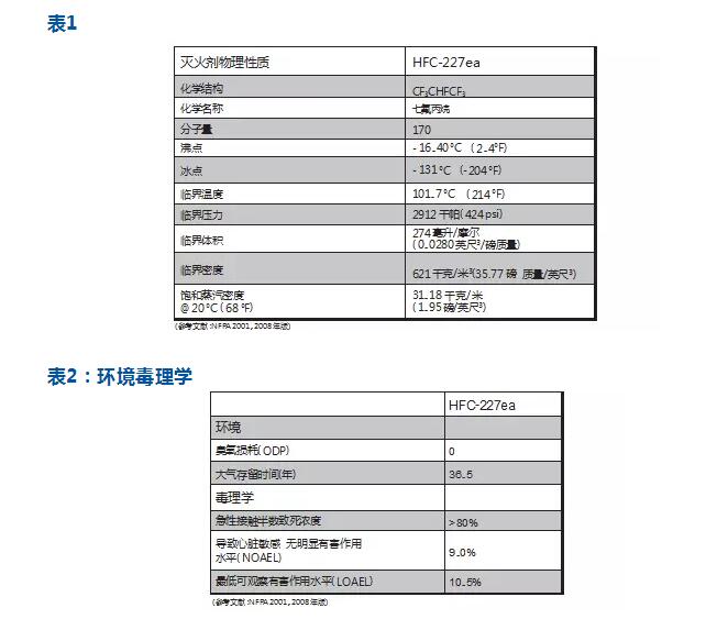 七氟丙烷滅火劑物理特性見下表: