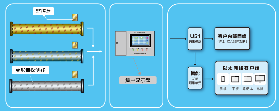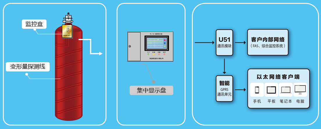 本系統具有24小時實時在線監測管瓶自身的安全狀態,至少提前10天預警,定位出險點(問題管瓶);記錄并遠程傳輸,有效提示爆炸安全隱患,從而杜絕管瓶爆裂爆炸事故的發生。